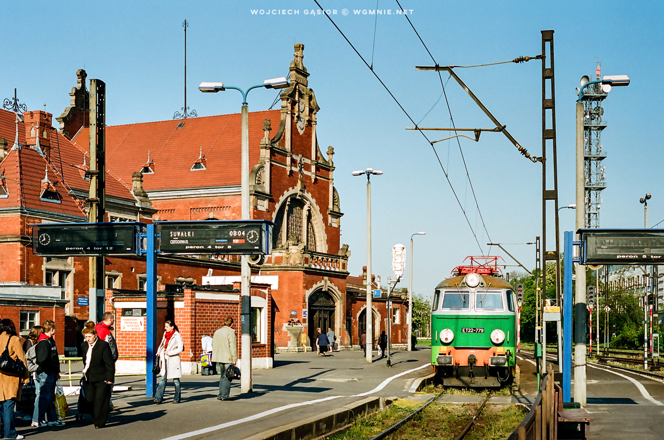 ET22-779 z CM Białystok prowadząc pociąg pospieszny „Jaćwing” z Wrocławia do Suwałk wjeżdża w perony Opola Głównego. Miejscowy budynek dworca jest bardzo ładny, ale ciężko go złapać w kadrze z pociągiem. [04.05.2007]
