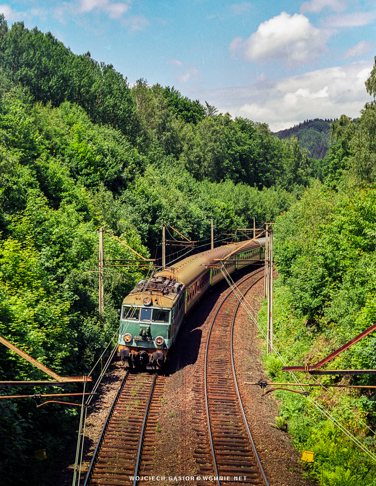 EU07-207 z pociągiem osobowym 224 z Jeleniej Góry do Wrocławia między Janowicami Wielkimi a Ciechanowicami. 26.06.2004