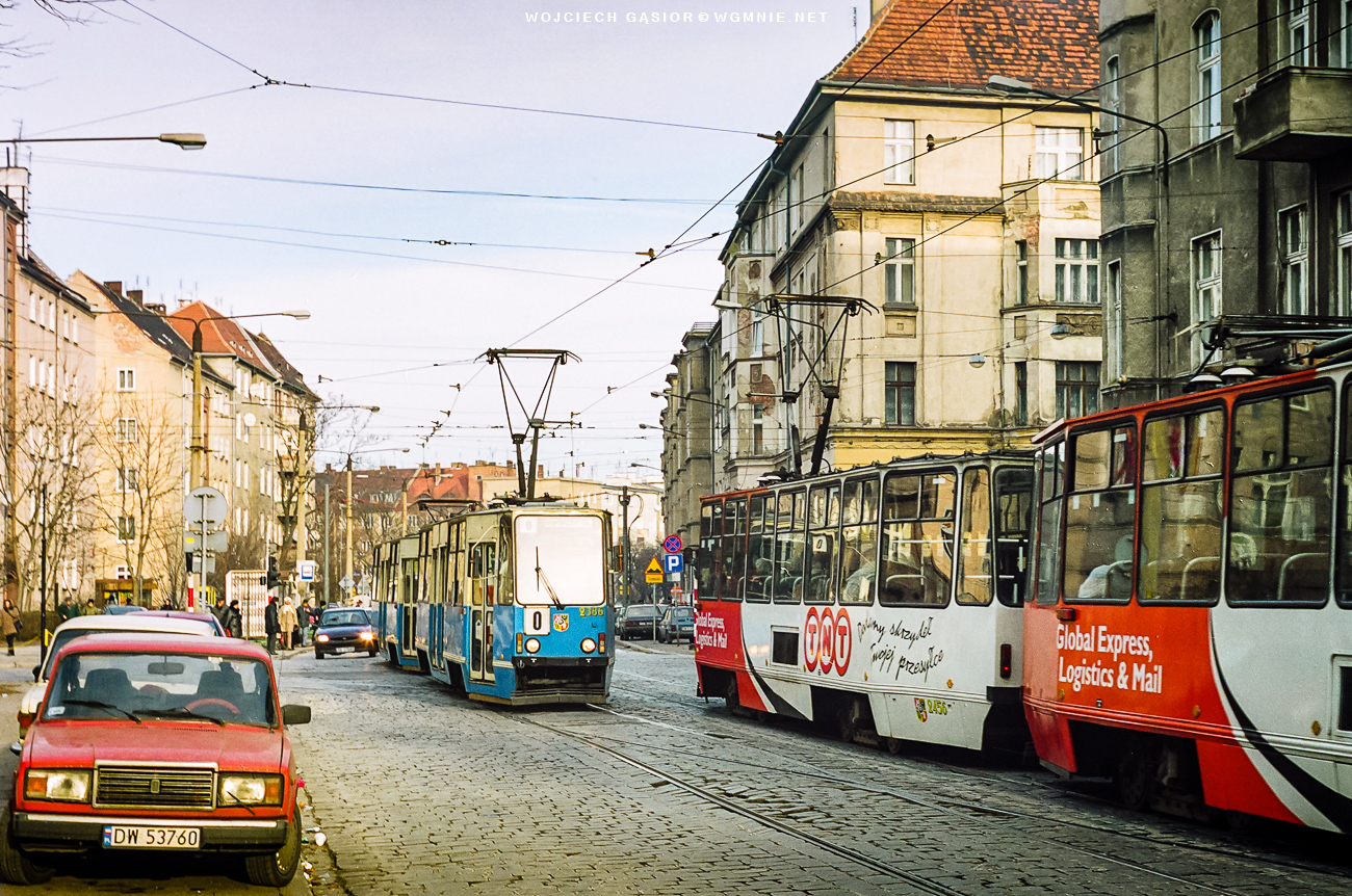 Tramwaj z parowozem na wspólnych torach