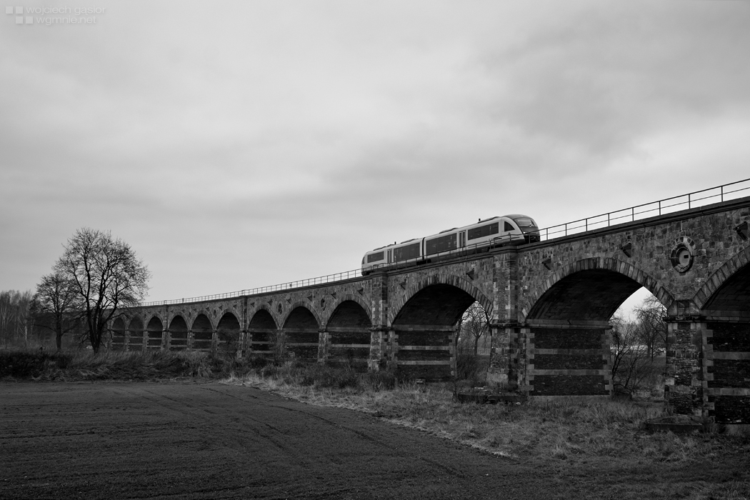 Pociąg osobowy 20913 relacji Rybniště – Liberec złapany na granicznym moście nad Nysą Łużycką. Pomimo że znajduje się już nad terytorium Polski, pokonuje odcinek nadzorowany jeszcze przez niemieckiego zarządcę infrastruktury, lecz tuż za mostem czeka go spacerowe 30 km/h na 2,96-kilometrowym odcinku, którym władają Polskie Linie Kolejowe.