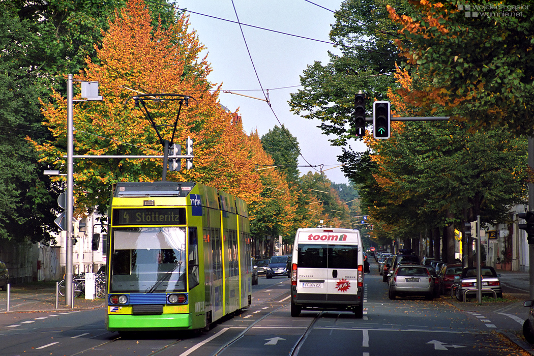 NGT8 1142 mija barwy jesieni na Waldstraße w Lipsku. 2008-09-28