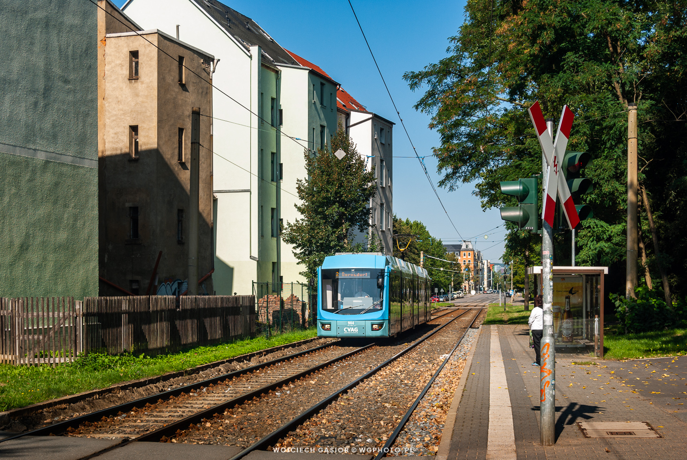 Na pewno chodziliście kiedyś przez podwórka aby skrócić sobie drogę. Tramwaje w Chemnitz też tak robią, omijając zawijas Bernsdorfer Straße. 2009-09-08