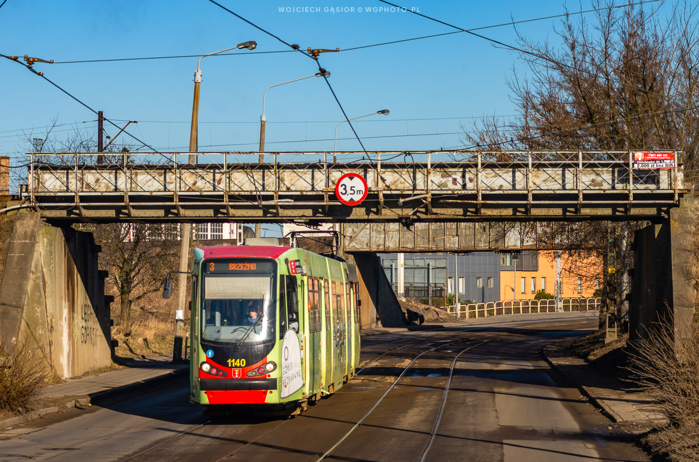 Gdańsk, ul. Teofila Lenartowicza, N8C-MF01 1140 mija wiadukty kolejowe na dojeździe do portu. 10.02.2015