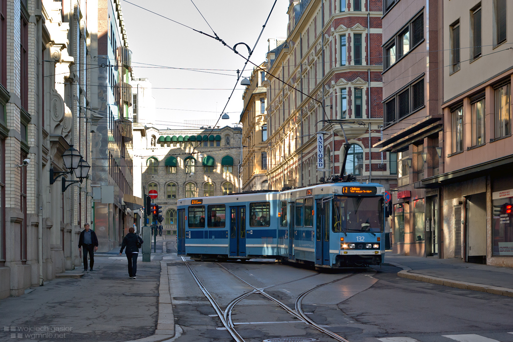 Oslo, słynne skrzyżowanie z przeplotem na wyjeździe z Akersgata w Tollbugata sfotografowane w mało sprzyjających warunkach oświetleniowych. 23.05.2011