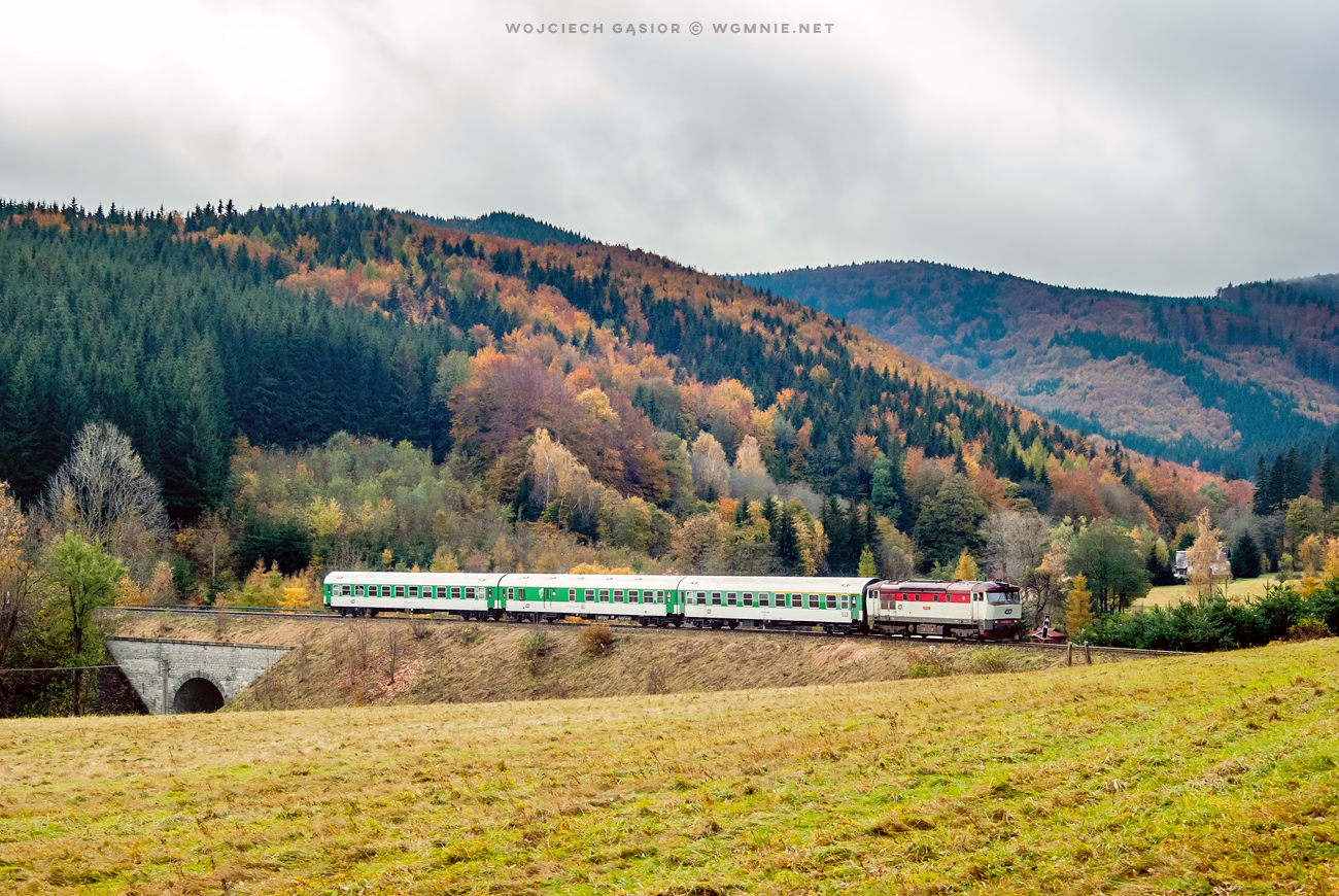 749 246-5 z poc. posp. 909 „Praděd” z Brna hl.n. do Jeseníka opuszcza Horní Lipovą. 2009-10-27
