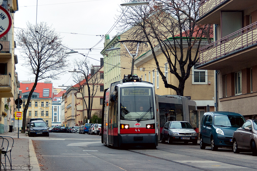 Krótki ULF wykręca z Wallrißstraße w Schöffelgasse w Wiedniu. 12.12.2009