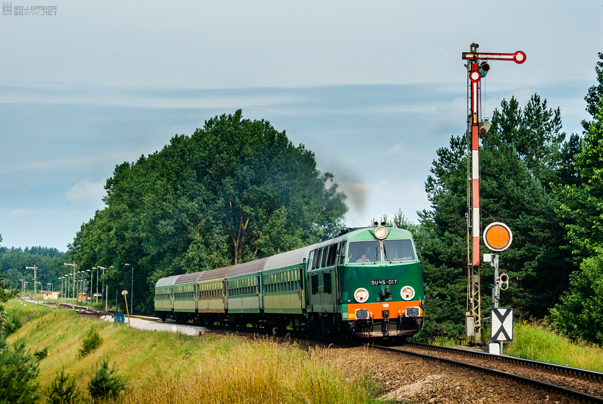 Pociąg pospieszny 13106 „Kinga” z Suwałk do Krakowa, prowadzony SU45-017, minął na biegu Sidrę. 12.07.2009