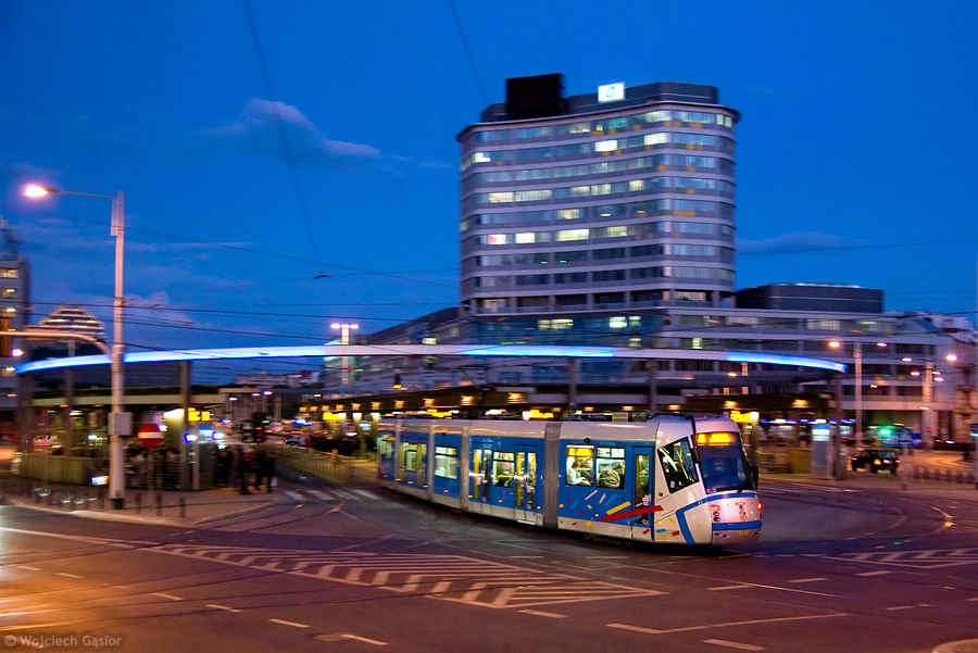 Ciapek, jak na szybką kolejkę kursującą prawie jak metro przystało, wpada na drugi peron na Rondzie Reagana, gwałtownie przeginając się na łukach pozbawionych krzywych przejściowych. 13.10.2011