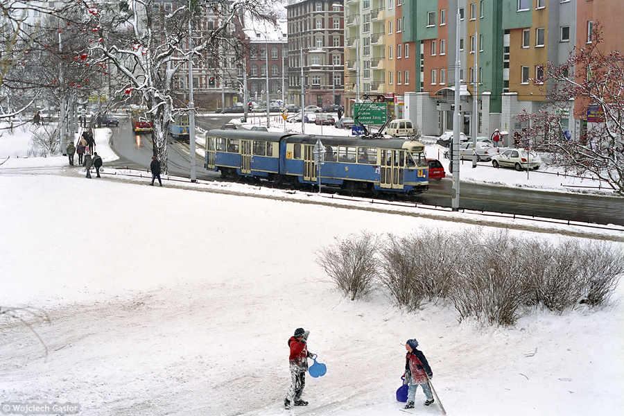 Wrocław, ul. Słowiańska. 102Na 2026 jako objazdowa 7 mija Górkę Słowiańską, na zboczach której trwa zimowe szaleństwo. 27.01.2007