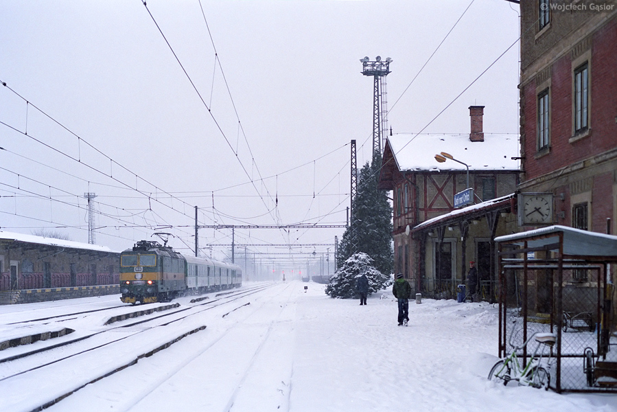 163 062-3 z pociągiem osobowym 5025 rel. Pardubice hl.n. – Česká Třebová zatrzymuje się na trzecim torze przy „praskim peronie” na stacji Ústí nad Orlicí. Po przeciwnej stronie budynku stacyjnego znajduje się „peron letohradzki”. 16.02.2009
