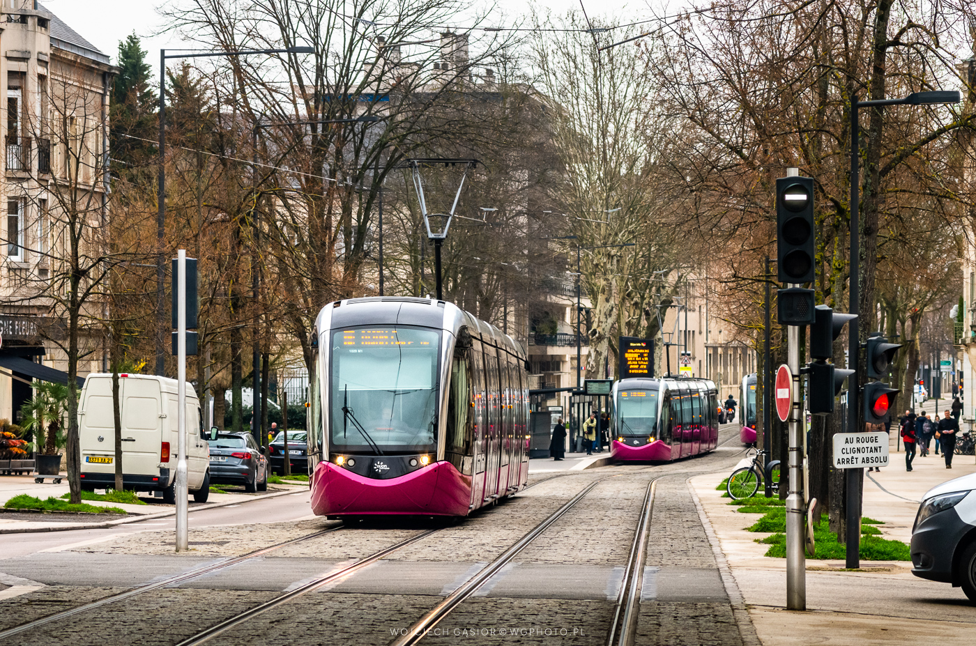 Dijon, Boulevard de Brosses. W mieście funkcjonują dwie linie tramwajowe. Ich synchronizacja tak, by nie jechały naraz, jest zatem banalna, ale jak widać nie zawsze wychodzi. No chyba że to tak specjalnie, np. w celu zapewnienia przesiadki, to pardon. 20.03.2018