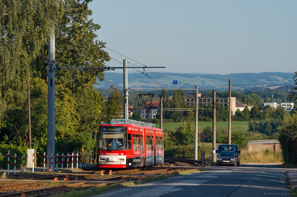 Zwickau, Robert-Koch-Straße. W takich sympatycznych okolicznościach przyrody czwórka dociera do pętli przy szpitalu. A te Niemce to takie porządne, że co słup to bardziej krzywy. 08.09.2009