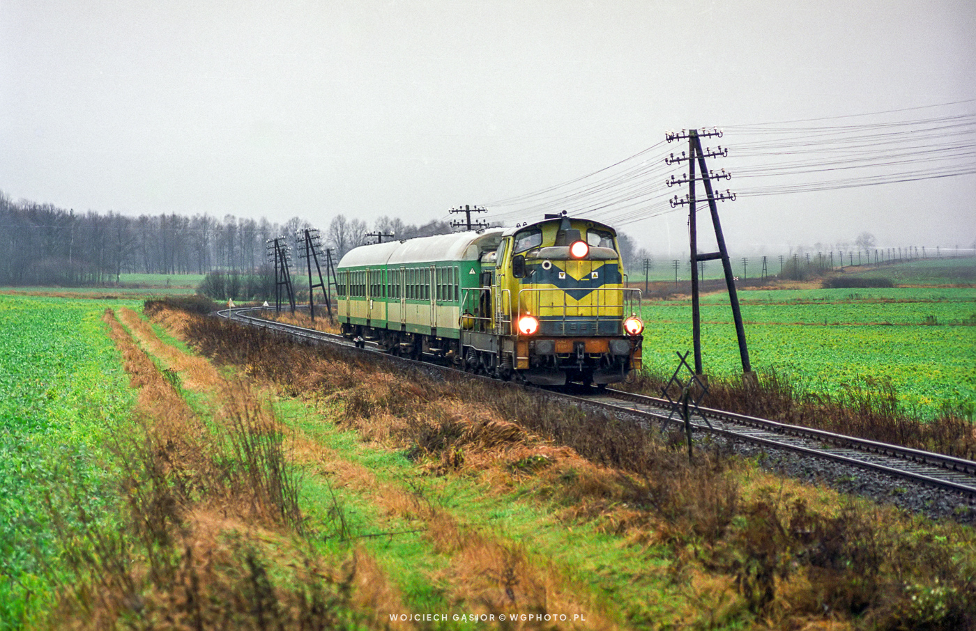 SU42-540 z poc. osob. 9936 rel. Nysa – Opole pokonuje odcinek z Wyszkowa Śl. do Kubic (szlak Nysa – Łambinowice). 06.12.2003