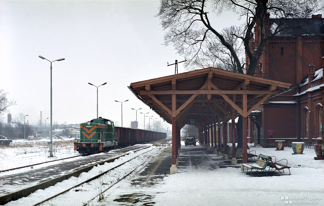 Pociąg zdawczy z Wałbrzycha Głównego zatrzymał się przy peronie drugim w Kamiennej Górze. Dziś jest tutaj całkiem podobnie – zniknęły jedynie ławki oraz zmienił się model auta parkującego pod wiatą. Do kompletu było foto z budynkiem, ale skan z płyty wyparował. 27.12.2002