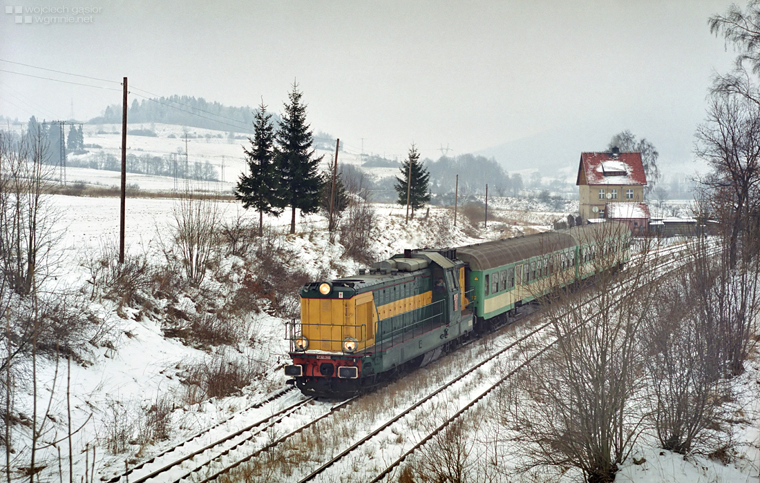 SP32-149 z pociągiem osobowym 7722 z Wałbrzycha Gł. do Lubawki mija dawny Podg Krużyn, gdzie odgałęziała się łącznica do Marciszowa Górnego, umożliwiająca jazdę bez zmiany czoła w kierunku Jeleniej Góry. 27.12.2002