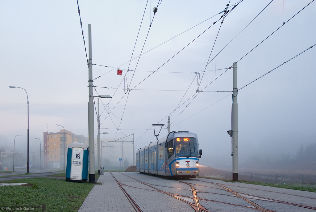 Chwili przerwy na ulicy Gwareckiej nie mogłem wykorzystać inaczej niż fotografując piękne obrazy tworzone przez poranną mgłę podnoszącą się znad Ślęzy. 08.05.2012