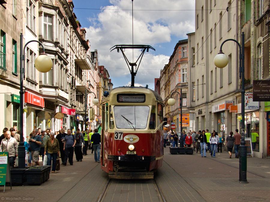 Chorzów, ul. Wolności. Stodwójka na deptaku. To foto pokazuje, jakie ogniskowe często były w modzie, ale dodaję je, bo nie sądziłem że tak ładnie da się wyciągnąć cienie z rawa z małej cyfry. 2008-05-10