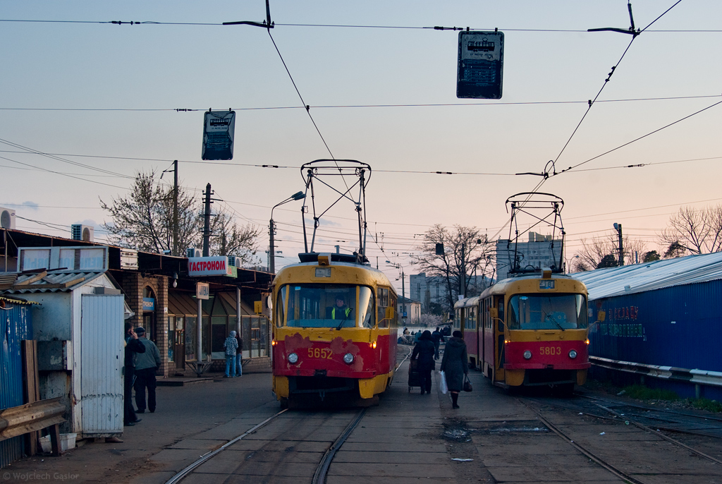 Kijów, pętla metro Lisowa. Tatry oczekują na pasażerów na przecudnej urody węźle przesiadkowym, zlokalizowanym przy lewobrzeżnym krańcu czerwonej linii metra. 2010-04-23
