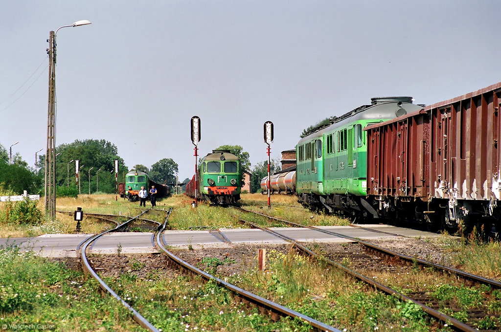 Krosno Odrzańskie. Podczas gdy brutto do Niemiec prowadzone ST43-258+365 wjeżdża na stację, pociągi z ST43-80 i -273 oczekują na zwolnienie szlaku w kierunku Czerwieńska. 24.07.2006