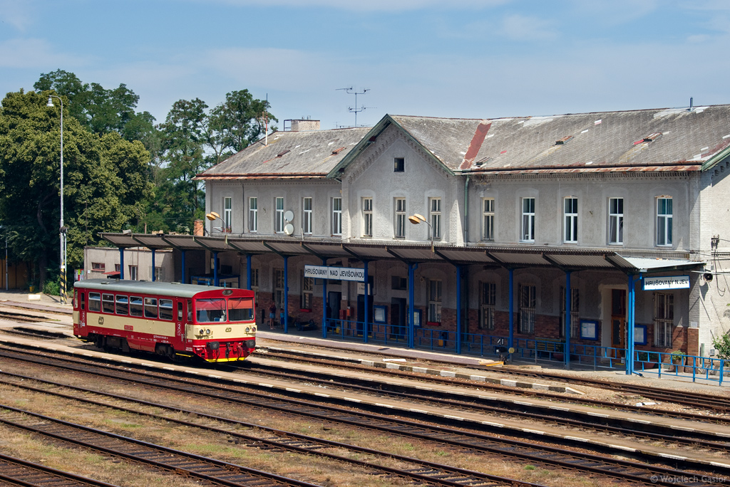 Hrušovany nad Jevišovkou. 810 222-0, wykonujący tego dnia kursy na 7-kilometrowej linii do Hevlína, oczekuje na zatrudnienie. 22.07.2009