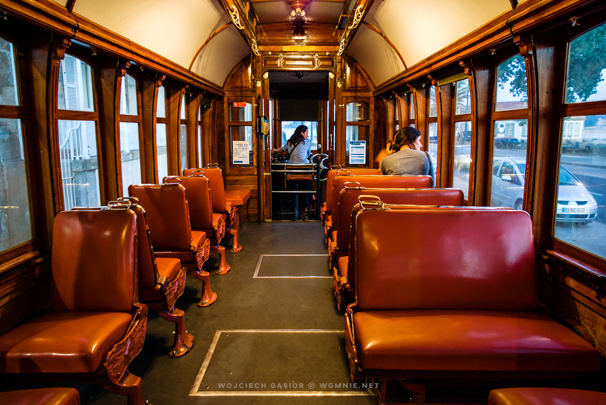Wnętrze tramwaju jest niemal nieskażone nowoczesnością. Można było też spotkać wagon z drewnianą podłogą. Boazeria, skajowe, miękkie fotele, stylowe okucia oraz pęk gołych żarówek pod sufitem robią jednak klimat. 02.09.2010