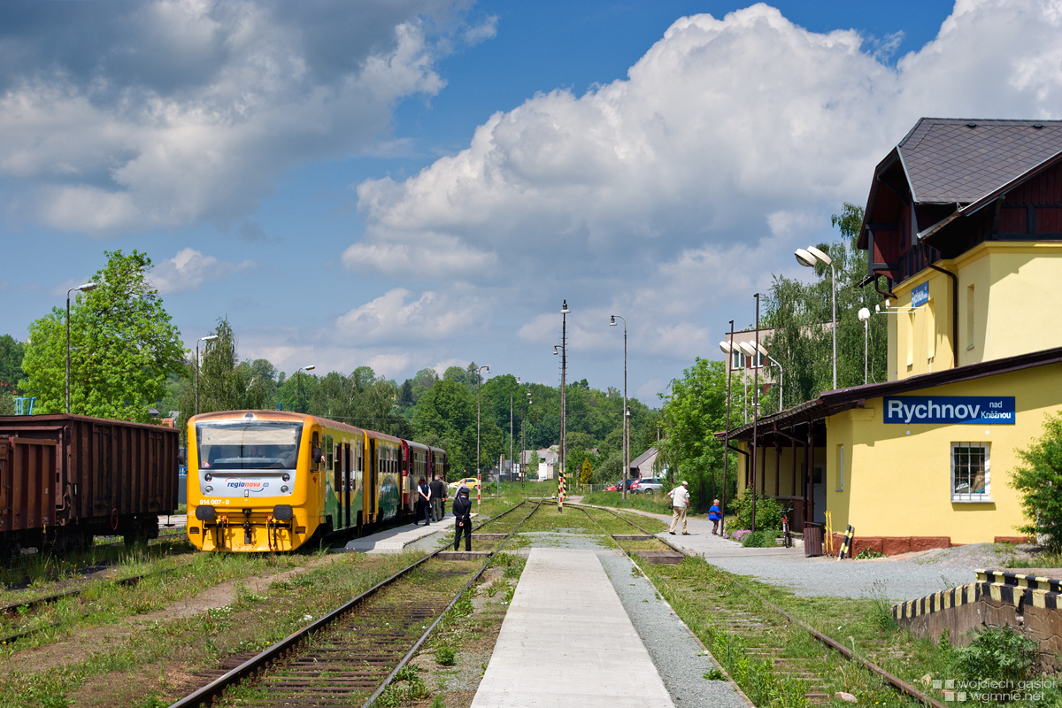 Pociąg osobowy 20224 z Častolovic do Solnic odbywa 13-minutowy postój w Rychnově nad Kněžnou, w czasie którego odłączona zostanie regionova wybierająca się zaraz w kurs powrotny do Častolovic. 2009-05-12