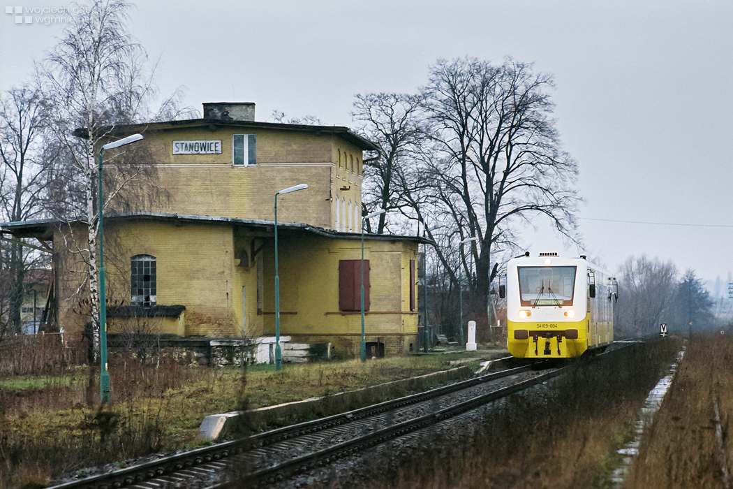 Drugi dolnośląski SA109 miał tego dnia więcej szczęścia i nie zdefektował. Na zdjęciu: obsługując pociąg 4420 z Legnicy do Jaworzyny Śląskiej zatrzymuje się w Stanowicach. 28.12.2004