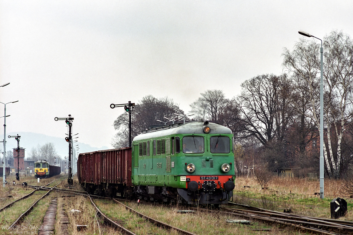 Zielony wyjeżdża z Kamiennej Góry ze zdawką do Lubawki. Jako że zawsze fotografowałem tutaj wyjazd pociągu z toru pierwszego, ponieważ była to sytuacja planowa, tym razem miałem nadzieję na zdjęcie z uniesionymi ramionami semafora wyjazdowego z drugiego toru. Niestety był to okres, gdy semaforów na tej głowicy nie podawano wcale. 13.04.2004