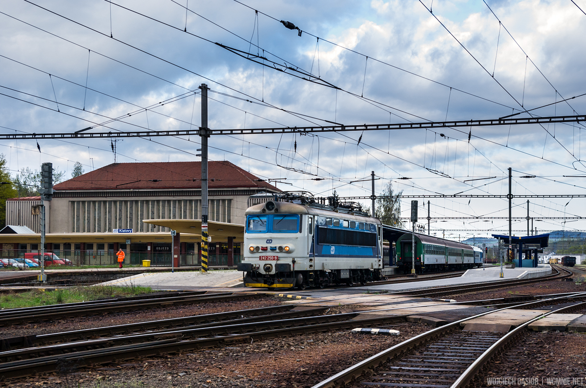 Panuje w tym kadrze lekki bałagan, a mający być tematem zdjęcia budynek dworca o interesującej, acz przytłaczającej architekturze jest kiepsko widoczny, ale zdecydowałem się na prezentację tego knota z uwagi na dobrze widoczną i typową dla Czechów sytuację bezprądowej jazdy na głowicy rozjazdowej podczas manewrów. 14.04.2011