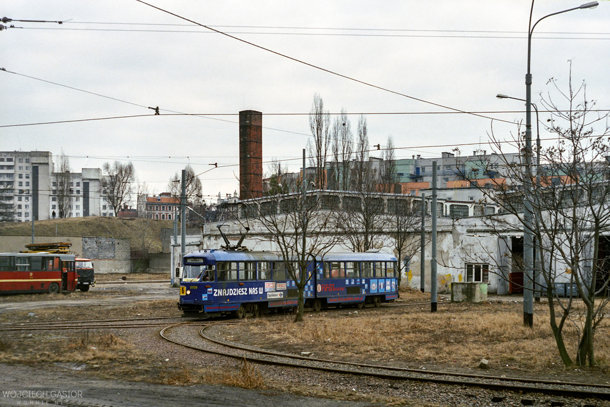 Objazdowa szóstka 2059 zawraca na terenie „obcej” dla siebie zajezdni Ołbin. 10.03.2003