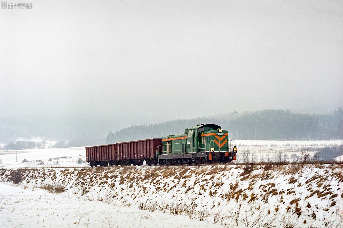 Kamienna Góra – Sędzisław. SM42-307 prowadzi pociąg zdawczy z Lubawki do Wałbrzycha Gł. Rzadko zdarzało mi się złapać ten pociąg, bo zazwyczaj nie bywałem w tym rejonie w dni robocze. W okresie poświątecznym jednak się udało. 27.12.2002