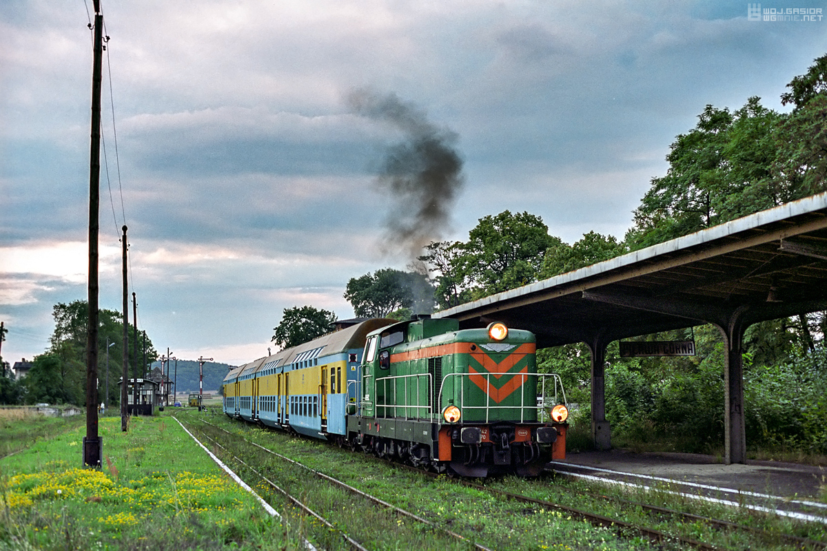 SM42-070 daje czadu ruszając z Piławy Górnej z mocno popołudniowym pociągiem 44025 z Kamieńca Ząbk. do Jaworzyny Śl. 26.08.2006