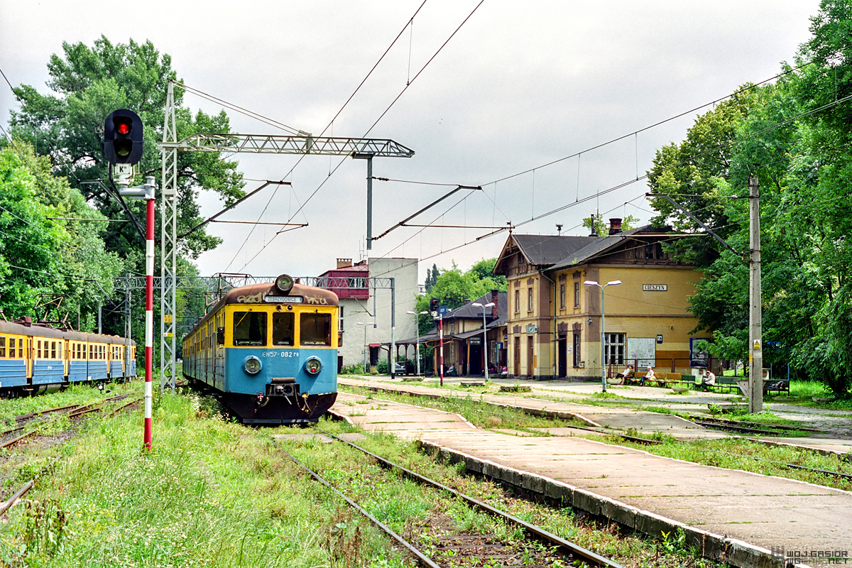 Ładny lecz zaniedbany budynek dworca i betonowe lecz niskie i wąskie perony mimo wszystko przywołują skojarzenia z leżącymi tuż za granicą Czechami. Tylko pociąg trochę nie pasuje. EN57-082 odjedzie jako lokalna osobówka nr 9014 do Zebrzydowic. 16.07.2004