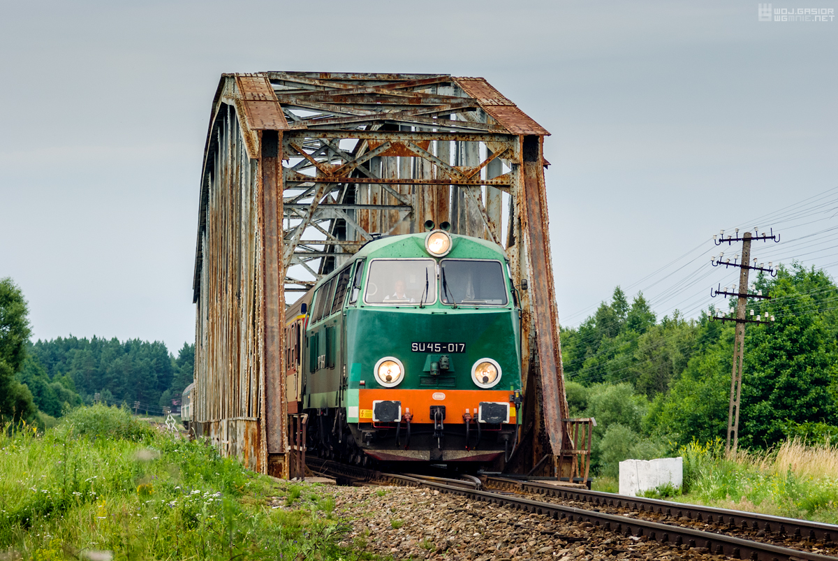 Pociąg pospieszny 91002 „Hańcza” z Suwałk (z wagonami z Šeštokai) do Warszawy Zachodniej przejeżdża przez most nad Biebrzą. Nie ma to jak znaleźć miejsce na 10-wagonowca. 😉 12.07.2009