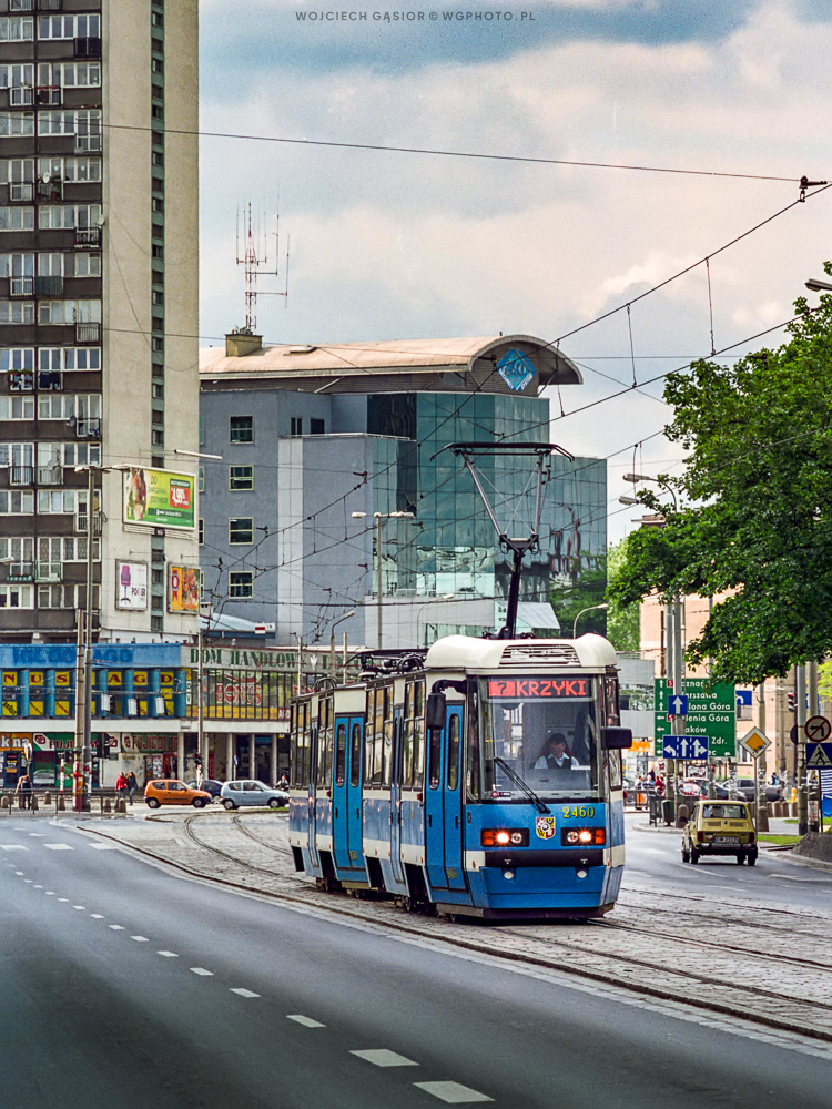 Wrocław, ul. marsz. Józefa Piłsudskiego, 105NWr 2460+2541 na objazdowej siódemce. Rzadko porywałem się na kadry na ruchliwych ulicach w centrum w obawie przed najazdem aut. 22.05.2004