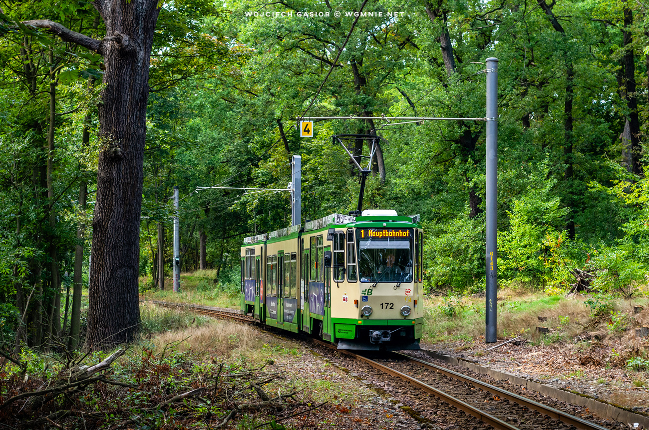 Tatra KTNF6 172 jedzie przez las w dzielnicy Görden. [Brandenburg an der Havel, 16.09.2021]