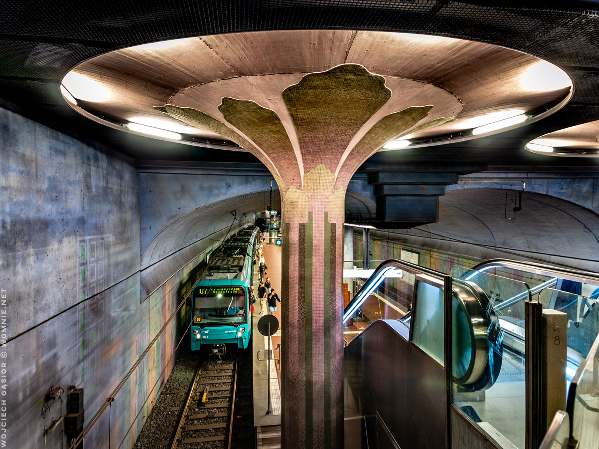 Skład linii U7, prowadzony wagonem nr 844, zatrzymał się pod betonowym kwieciem na stacji Westend we Frankfurcie. [25.08.2022]