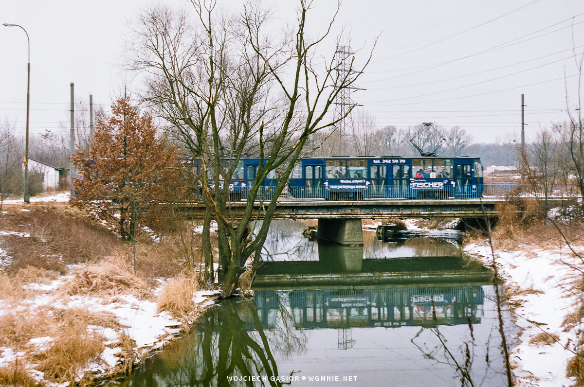 105Na 2452+2451 mija most nad Ślęzą za Pilczycami w stronę Leśnicy, we Wrocławiu oczywiście. Technicznie nie podołałem, ale kadr, pomimo upływu lat, bardzo mi się podoba. 10.02.2003