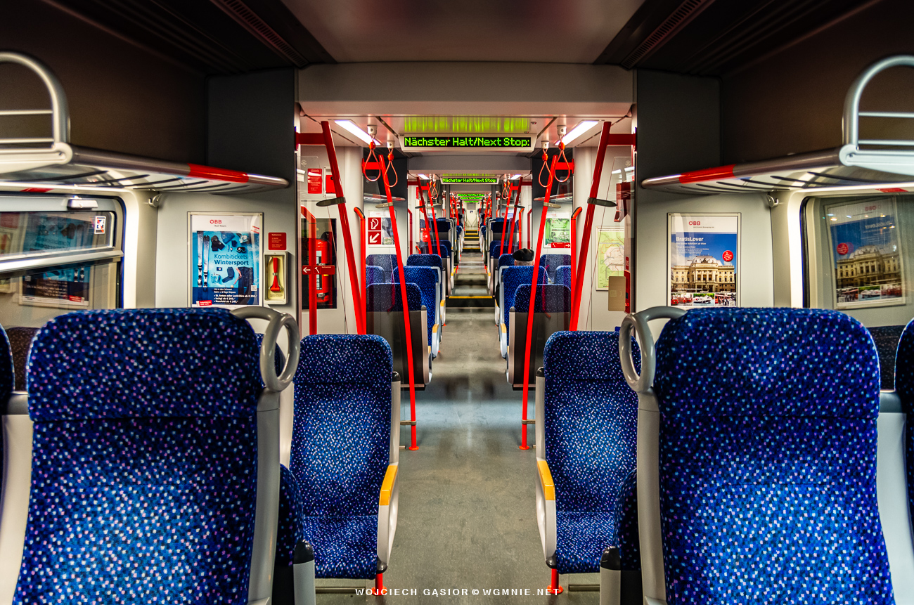 Wnętrze elektrycznego Desiro na linii S80 wiedeńskiej S-bahn. Następny przystanek: Stadlau. 25.12.2013