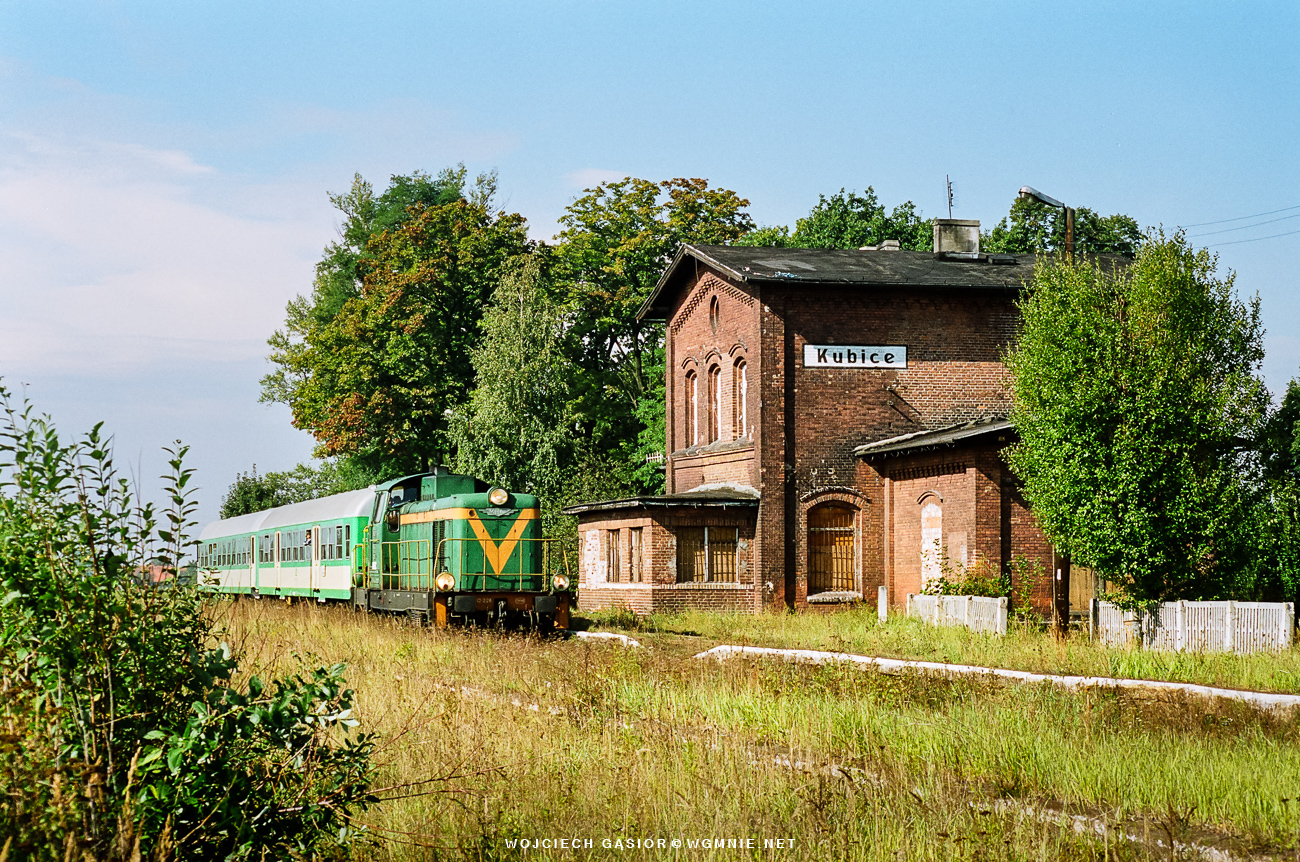 SP42-228 z pociągiem osobowym 9936 z Nysy do Opola zatrzymuje się w Kubicach. 21.09.2005