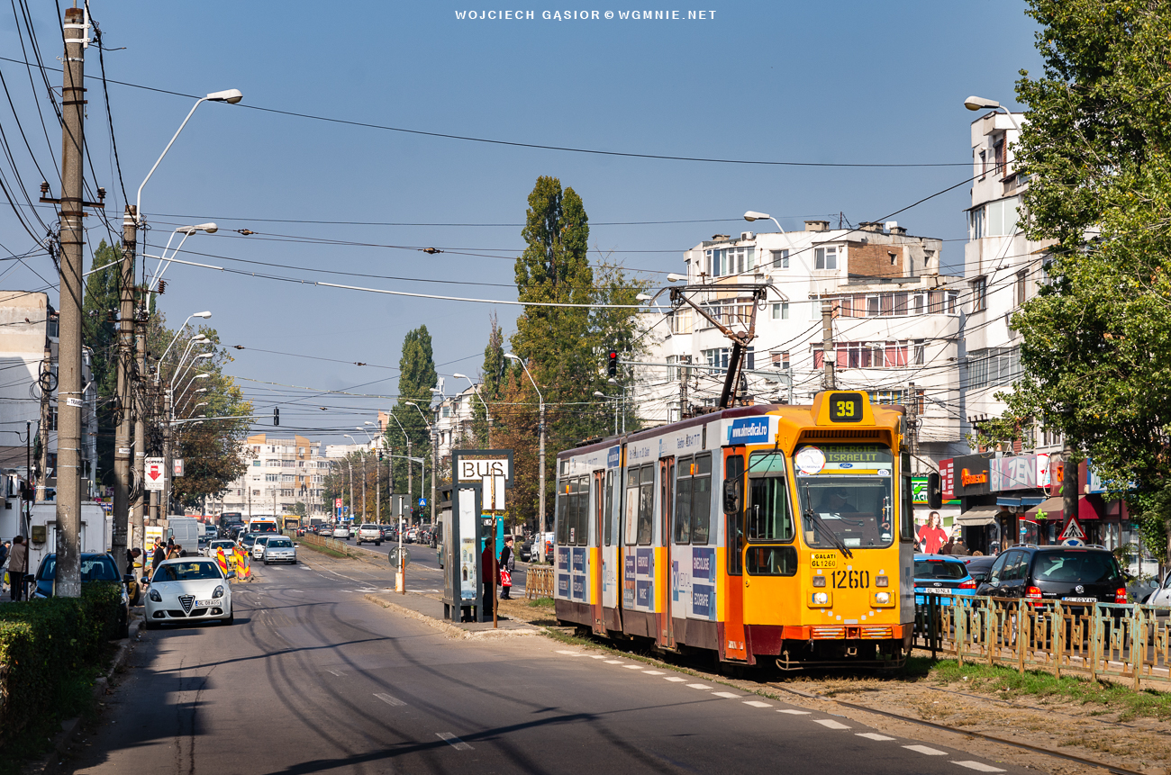Gałacz, Bulevardul Siderurgiștilor. Duewag ZGT6 1260 (ex-Rotterdam) odjechał z przystanku, który bardzo chciałby być autobusowym. Dotychczasowe zdjęcia z Gałacza były mgliste, ale w pewnym momencie mgła się nagle(!) przerzedziła i wyszło piękne słońce. 18.10.2019
