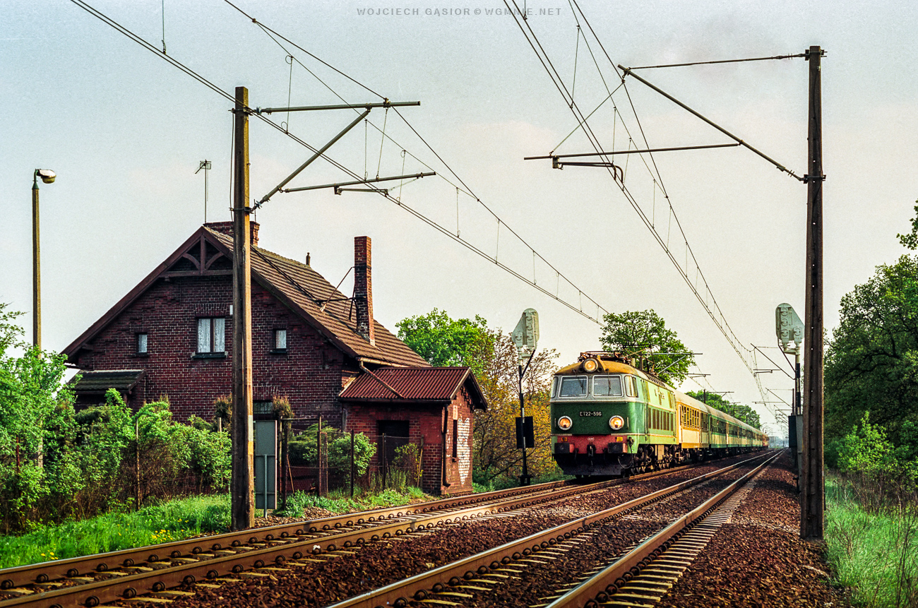 ET22-596 z pociągiem pospiesznym 38101 „Światowid” z Przemyśla do Szczecina pędzi szlakiem Wrocław Popowice – Wrocław Osobowice. 07.05.2006