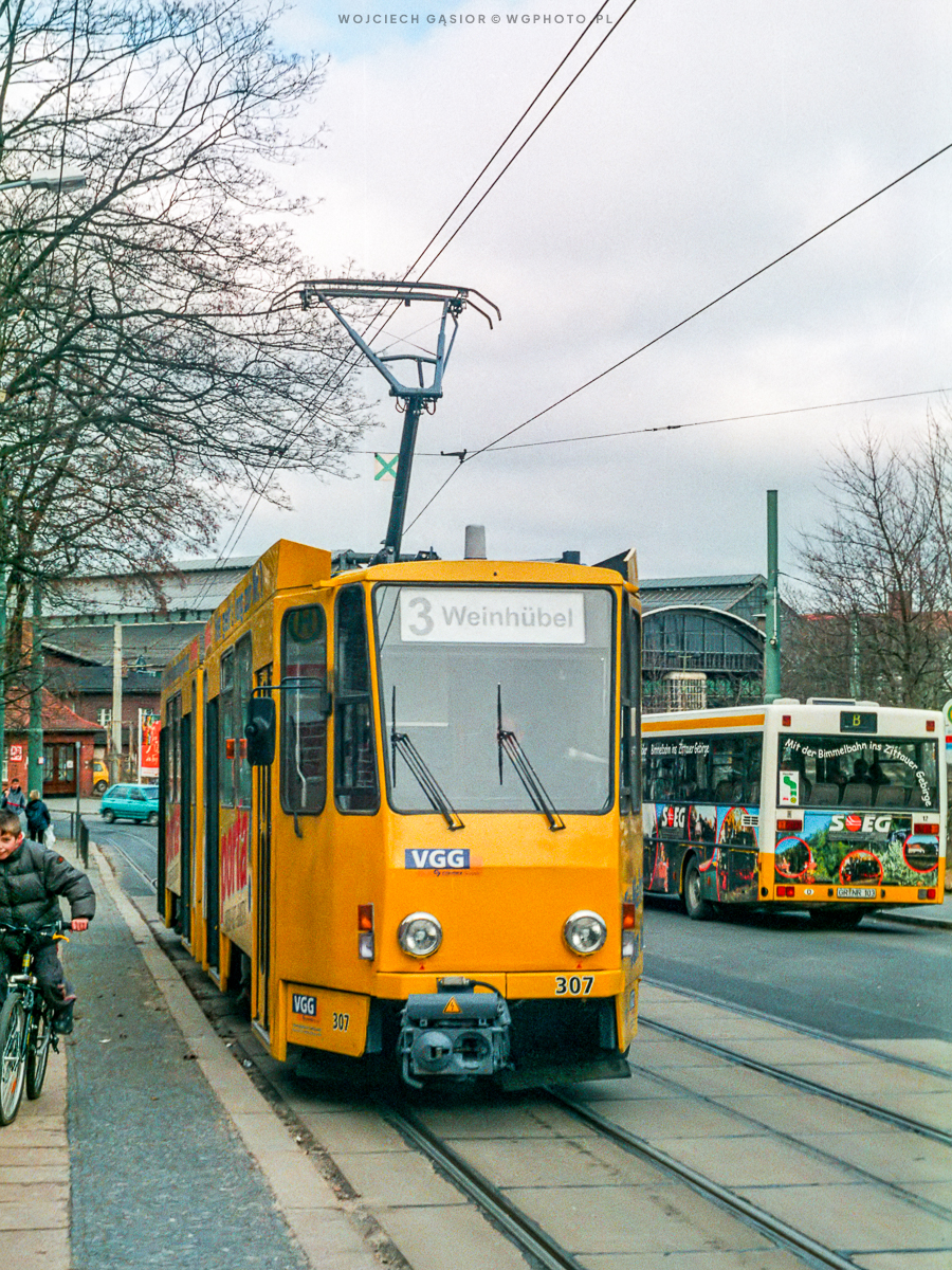 Görlitz, An der Jakobuskirche, KT4DC 307. Węzeł przesiadkowy przy południowym wyjściu z dworca do dziś się nie zmienił. 02.03.2002