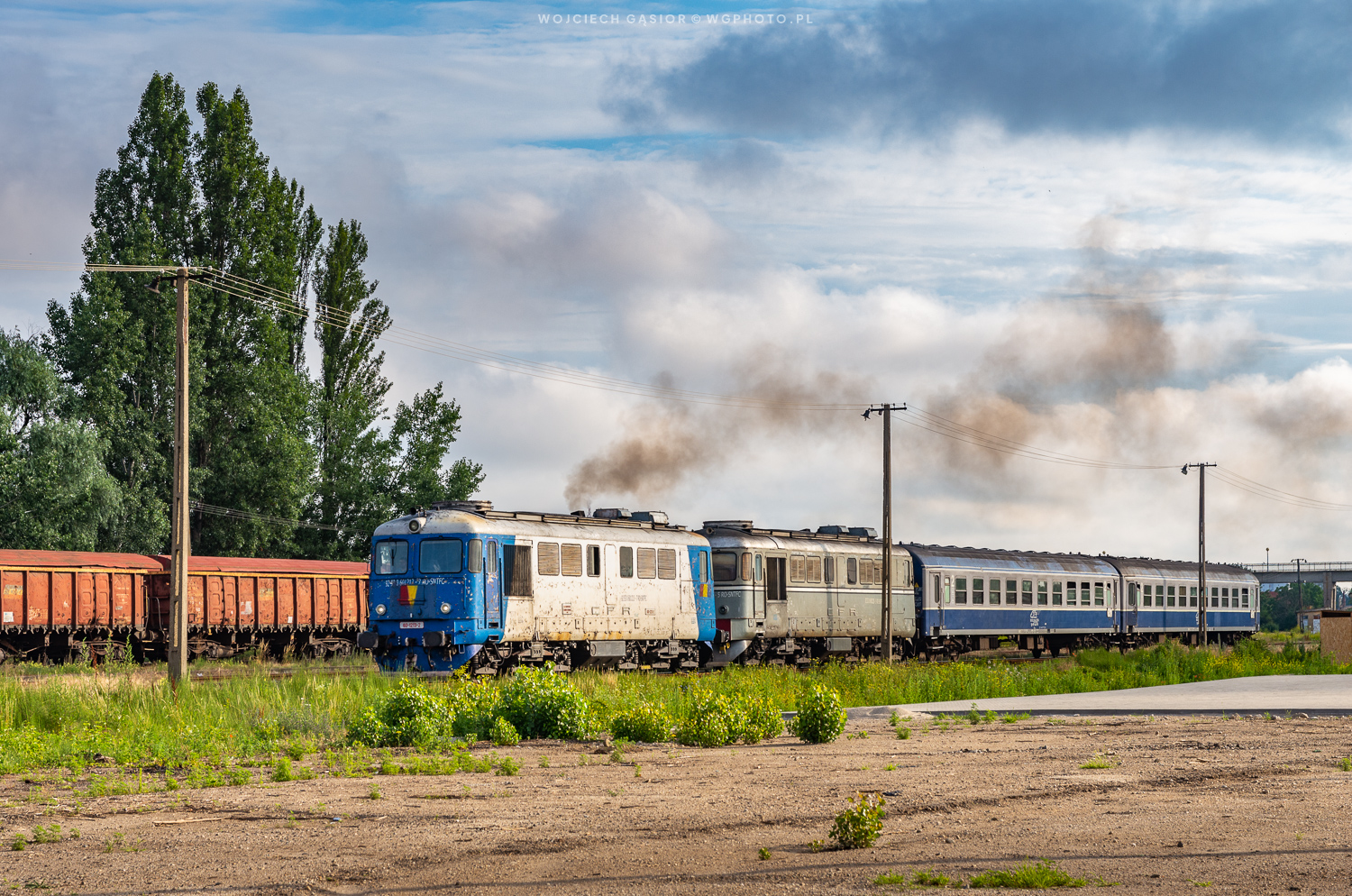 Rumuński duet 60.1213+60.1228 z pociągiem R4334 relacji Halmeu – Oradea odjeżdża ze stacji Satu Mare Sud. Zdjęcie na wjeździe, będące wersją docelową, już się tu pojawiło, jednak czas postoju umożliwił powstanie również tego knota – taki skład warto pokazać w bardziej portretowym ujęciu. 25.06.2023