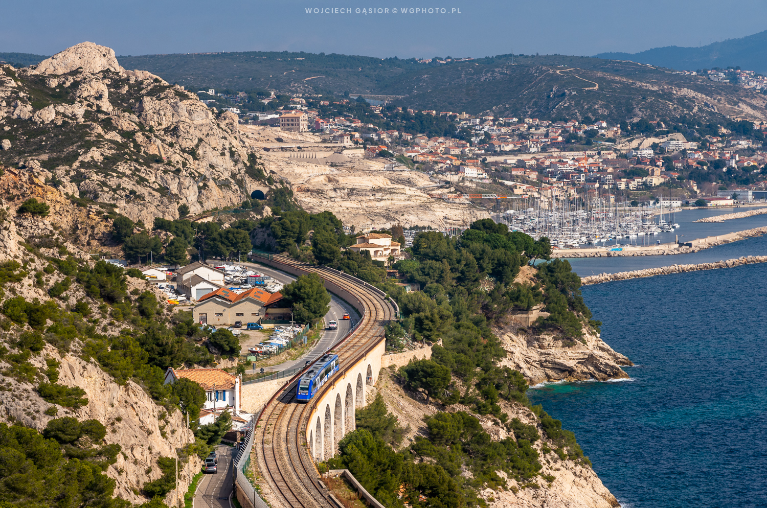 Jednostka serii X72500 jako pociąg TER relacji Marseille-St-Charles – Miramas jedzie wzdłuż Niebieskiego Wybrzeża odcinkiem L’Estaque – Niolon. Pojazdy tej serii można spotkać także w Rumunii (jako używane) – takie nawiązanie do poprzedniego zdjęcia. 🙂 Wiadukty, tunele i widok na morze towarzyszą pociągom na kilkunastokilometrowym odcinku. Szlak turystyczny jest natomiast bardziej wymagający – raz jesteś na wysokości, z jakiej powstało foto, a zaraz nad samym morzem. Niemniej taki trekking był bardzo przyjemny. 19.02.2025