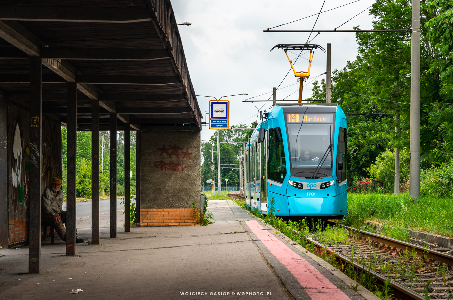 Ostrawa, pętla Nová Huť jižní brána. Stadler Tango NF2 1701 typowo po czesku czeka na odjazd o długość tramwaju przed przystankiem początkowym. Nie sądziłem, że będzie to pierwsze foto ostrawskiego Stadlera na tej stronie. 22.06.2019