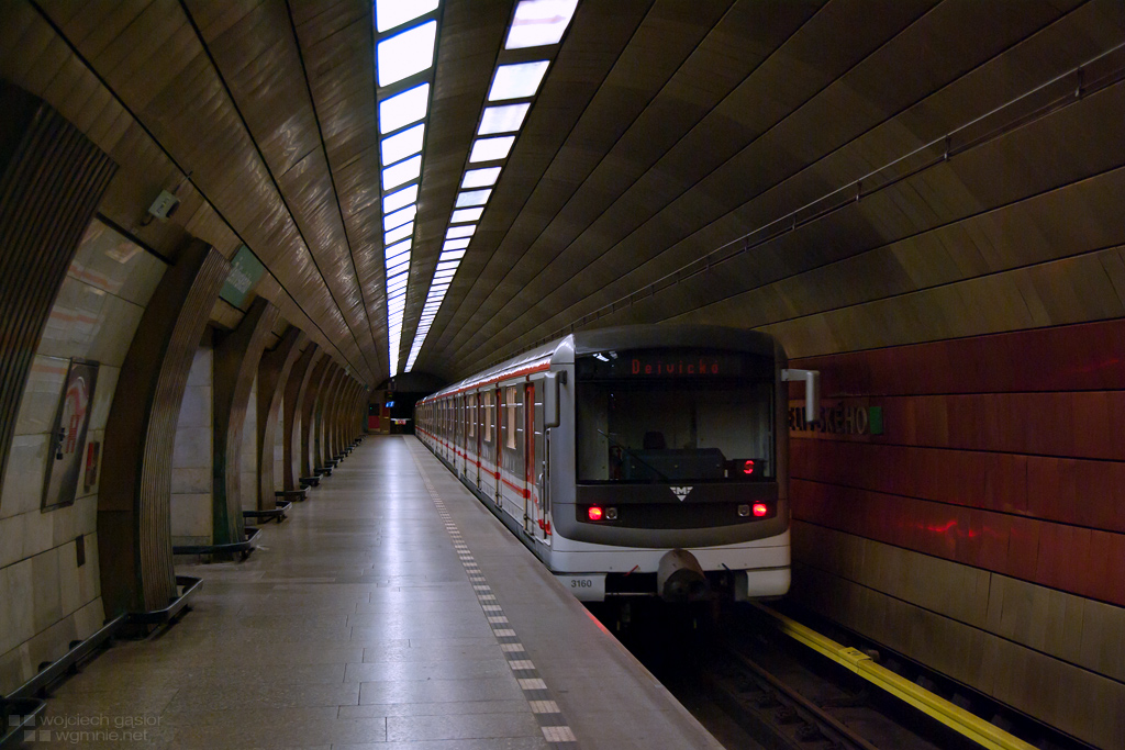 Stacja Želivského na zielonej linii metra. Praskie metro jest fajne, bo aż czuć w nim klimat radzieckiej myśli technicznej, ale z aparatem można biegać do woli. 08.07.2011